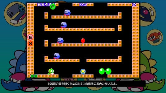1986年にアーケードゲームとして発売された、アワをはいて、敵をつつんで、割って倒していくアクションゲーム『バブルボブル』。そこに追加要素を加えて1988年にセガ・マークIIIで発売された『ファイナルバブルボブル』が、Nintendo Switch用ダウンロードソフトとして、バブルンの誕生日を記念して本日より660円(税込)で配信開始※しました。