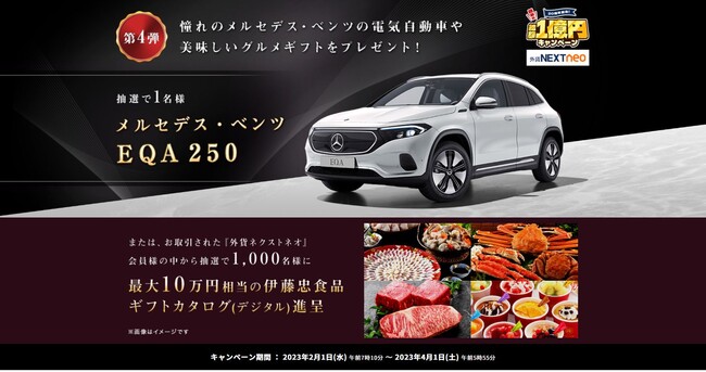 20周年記念キャンペーンの締めくくりとして「メルセデス・ベンツ EQA 250」や伊藤忠食品の「ギフトカタログ(デジタル)」が抽選で当たるキャンペーンを開催しています。お見逃しなく!