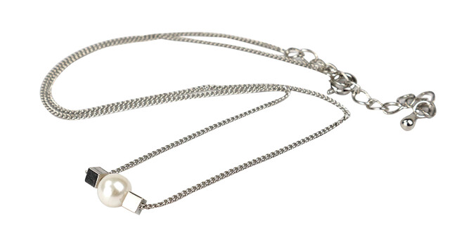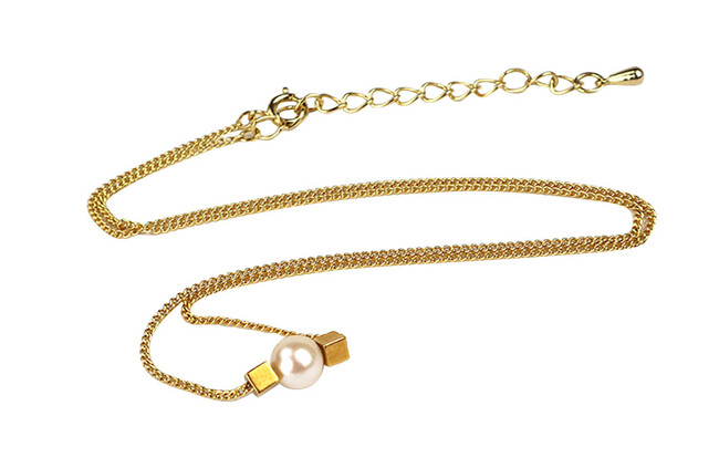 大人気のワンポイントネックレスにメタルキューブがついたシンプルなデザイン。