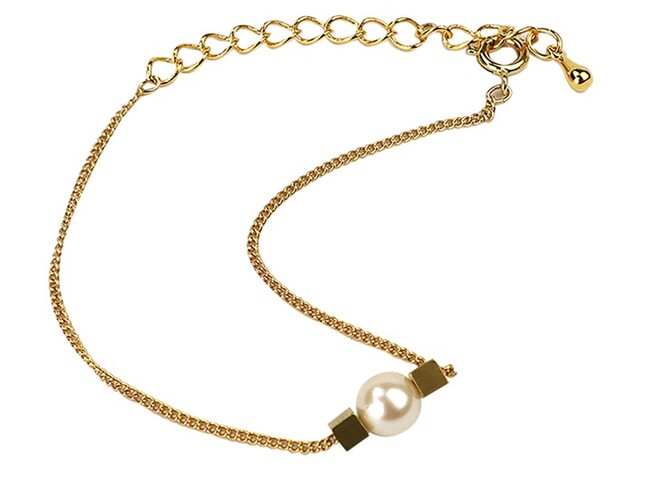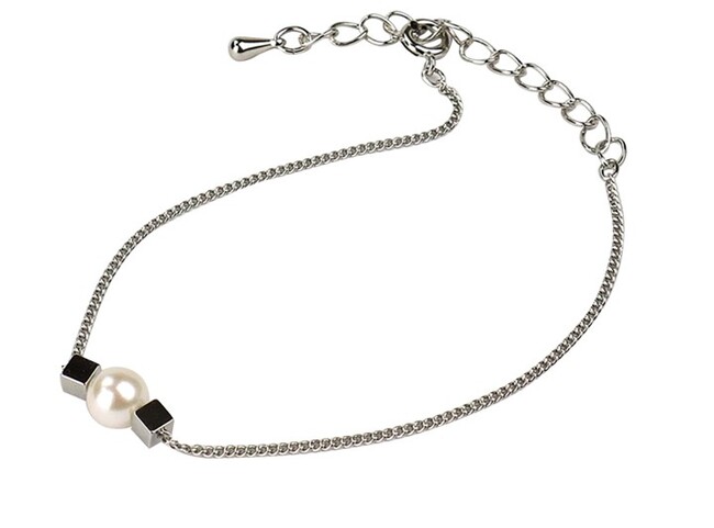 キューブと真珠のシンプルなデザインのブレスレット。