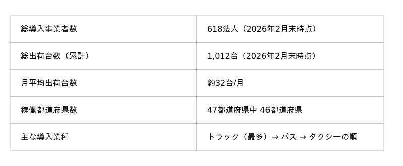 発売2年半で全国46都道府県に拡大、トラック・バス・タクシー事業者で導入加速