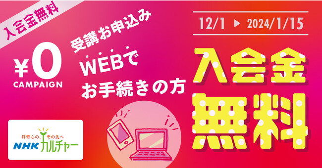 【内容】ホームページからお手続きいただくとNHKカルチャーの入会金が無料になります。