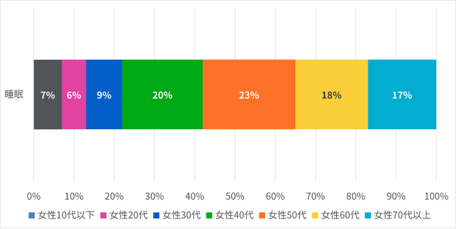 男女比では女性の方が多い結果となりました。女性の検索層の年代を見てみると、30~50代が多いことがわかります。暑さで眠りが浅くなりがちな季節に備えて、自分の体について見つめ直す機会として検索している方も多いのではないでしょうか。
