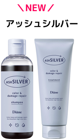 今までのカラーヘアの悩みであった髪のダメージやカラーの色持ち等の悩みをクリアにすべく、クオリティの高い潤い&美髪ケアを実現することで、これまで多くの評価をいただいてきたダイアンシリーズ。昨年発売した「カラーシャンプー&トリートメント」から、今回は発売当初より反響をいただいてきた人気カラーでもある”アッシュ”に新色が加わります。新カラーは髪色に合わせて選ぶことができる、アッシュオリーブとアッシュシルバーの2種類。黄ばみや赤み対策として、暗めカラーの方にもご利用いただけるカラーシャンプーとなっています。手軽にくすみ感や透明感をキープでき、女性だけでなく男性の方にもおすすめです。