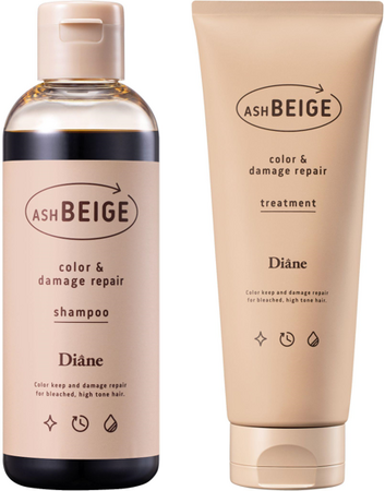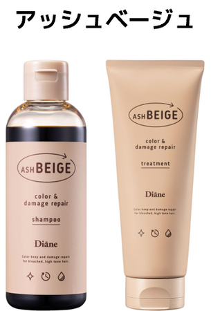 ブリーチ後の黄ばみを抑え、ダメージ補修しながらアッシュベージュ色をチャージします。