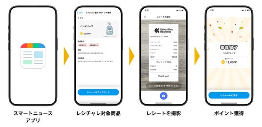 「SmartNews」から「レシチャレ」を利用することで、日常の買い物からスマニューポイントを獲得可能。スーパーやドラッグストアなど生活に密着した店舗を中心に、家計に直結するお得な体験を提供します。