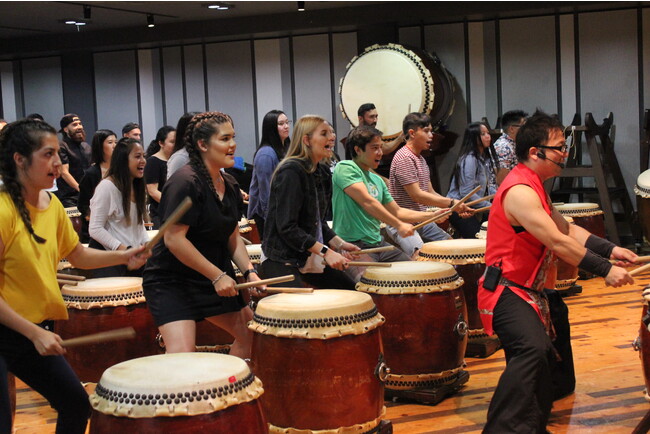 庭園内に佇む別邸「白鳳館」で、身体を動かしながら日本文化を学ぶことができる「和太鼓体験」。海外ゲストだけでなく、企業のチームビルディングとしての利用もおすすめです。