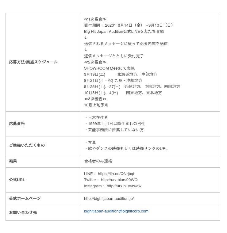 『Big Hit Japan Audition 2020』
