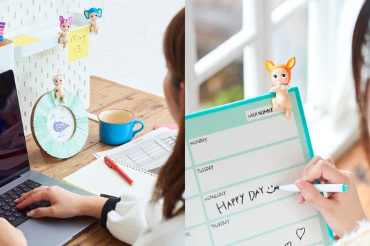 デスク周りや身の回りのものによじ登るソニーエンジェル。こちらを振り向き、仕事や勉強に励むあなたを、やさしく見守ります。ソニーエンジェルとふと目があったときに、心が癒されるでしょう。
