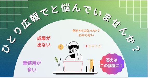 この講座を受講することで、明日から一人でも成果を上げることが可能となります。ひとり広報の苦悩を乗り越え、効果的な手法を身につけることで、成功への道を切り拓くことができるでしょう。