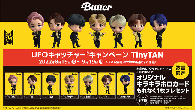 株式会社GENDA GiGO Entertainment(本社:東京都大田区 代表取締役社長:上野 聖)は、世界的人気を誇る「BTS」のキャラクター「TinyTAN」とタイアップしたキャンペーンを開催いたします。