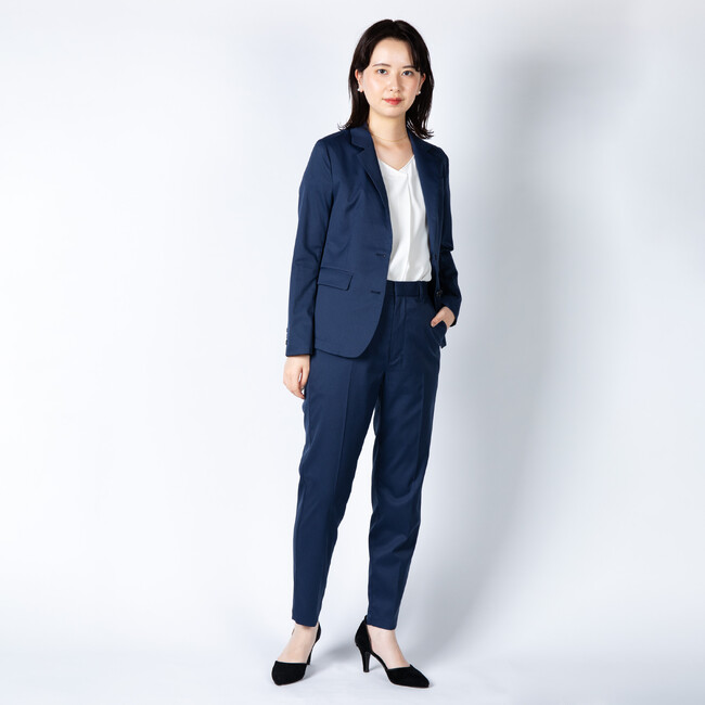 新色ビターネイビー「Bizテーラードジャケット」「Bizストレートパンツ」 詳細