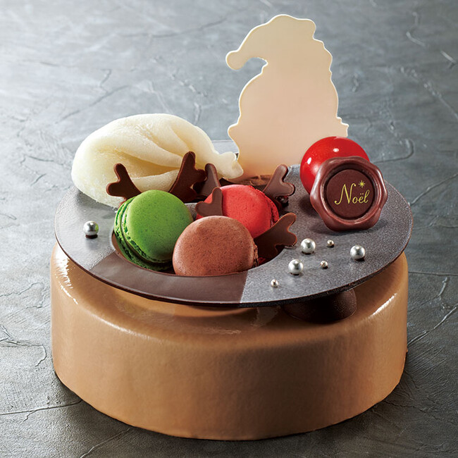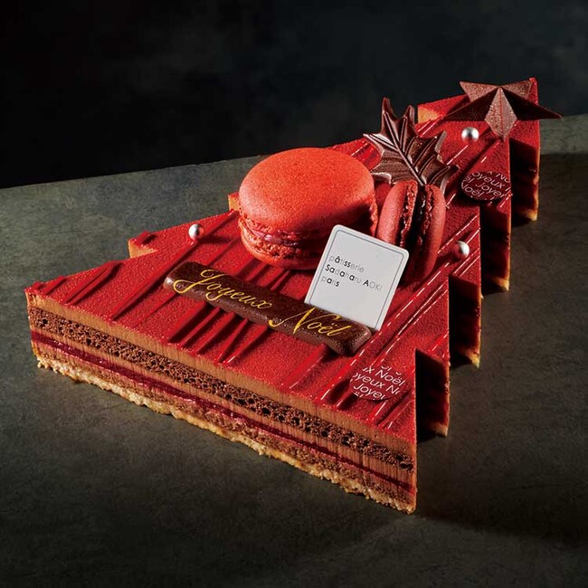 フランス・パリを拠点に、シェフパティシェとして活躍する青木定治氏。ミルクチョコレートクリームのなめらかで甘い口どけと、さわやかなフランボワーズジュレが絶妙に溶け合う官能的な味わいが魅力。クリスマスの主役になるサパン(モミの木)型のデザインです。