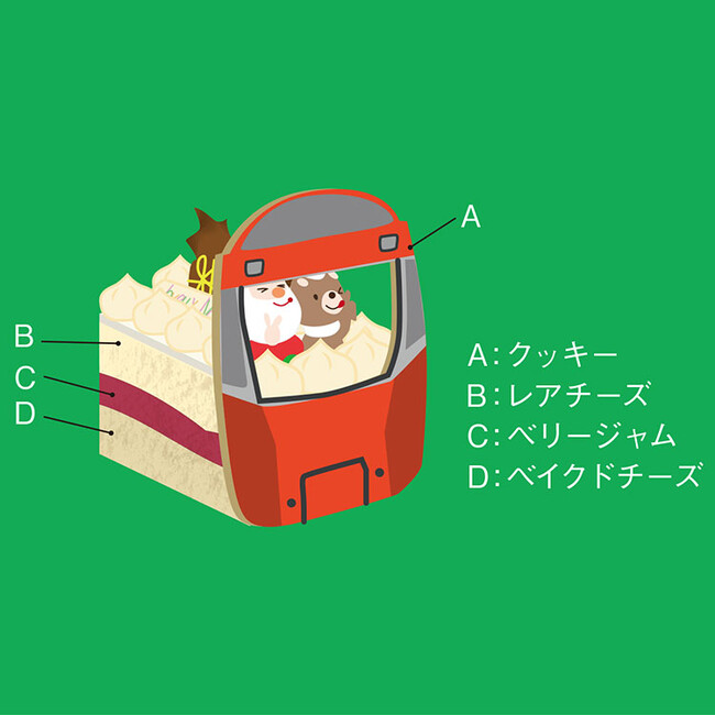 東京都・南烏山にあるパティスリーからロマンスカーモチーフのケーキが初登場です。ロマンスカーに乗ってやってきたサンタクロース。甘酸っぱいベリージャムがアクセントのチーズケーキです。
