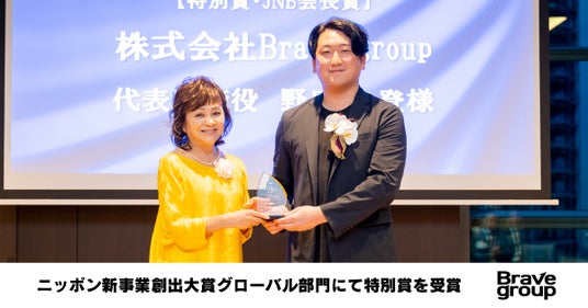 株式会社Brave group(本社:東京都港区、代表取締役:野口圭登、読み:ブレイブグループ、以下「Brave group」)は、ニュービジネスやベンチャー企業の振興と育成に寄与する一般社団法人東京ニュービジネス協議会(略称:東京NBC、所在地:東京都港区赤坂、会長:井川 幸広)と公益社団法人日本ニュービジネス協議会連合会(会長:池田弘)が主催するグローバル大賞で特別賞(JNB会長賞)を受賞したことをお知らせいたします。