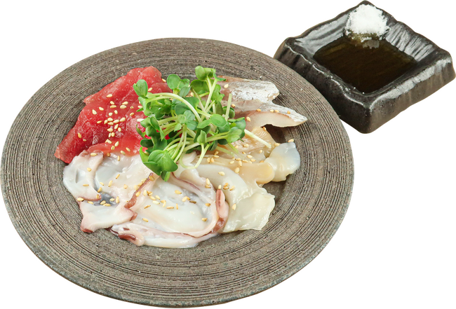 さらに、定番メニューでも人気商品である「刺身4点盛り」が、「塩ごま油で食べる刺身盛り合わせ」として期間限定で登場します。まぐろ、あじ、ツブ貝、生タコを盛り合わせており、塩ごま油につけることで、レバ刺しのようにお楽しみいただけます。