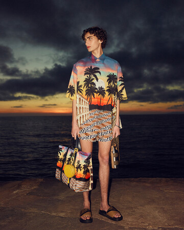 バイカラーと、ウィメンズのプレタポルテ全体の生き生きとしたさまを強調する「フェンディ ラビリンス(FENDI Labyrinth)」。ローマの夕暮れを思わせる温かみのあるカラーパレットにインスピレーションを得たグラフィックが美しいメンズの「サマー イン ローマ(Summer in Roma)」。この2つのシーズナルプリントが「ペカン」とデニムの両方に使われています。背景が移り変わると、スポーツスタイルはサイクリング、スイムウェアやアクティブウェアまでカジュアルとフォーマルの間を行き来し、ローマの人々の無関心さを楽しく表現しながら、コレクションを完成させるとともに活気をもたらしています。