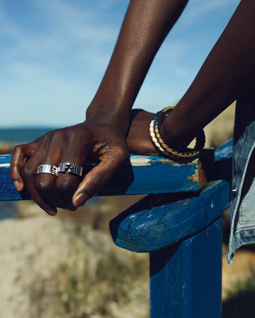 ジュエリー部門のアーティスティック ディレクター、デルフィナ・デレトレズ・フェンディ(Delfina Delettrez Fendi)によるファッションジュエリーでは、「ペカン」に敬意を表した驚くほど発色のよいバイカラーのウッドが、主張のあるバングルやリング、ループイヤリングを飾ります。とりわけ大胆なシェイプが特徴的な「フェンディグラフィー」の再登場を通じて、卓越した素材使いが表現されています。