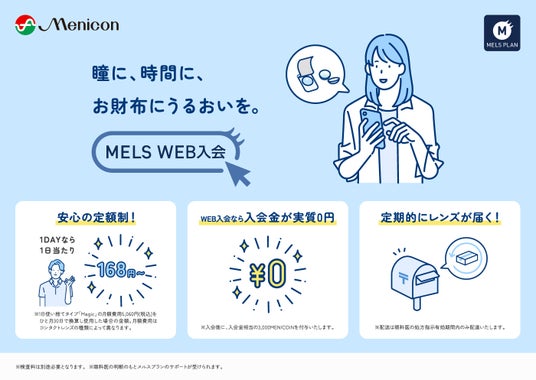 株式会社メニコン(本社:名古屋市中区葵三丁目21番19号、取締役兼代表執行役社長 CEO:川浦康嗣)は、定額制コンタクトレンズサービス「メルスプラン」において、オンラインで入会手続きが可能な新サービス「メルスWEB入会」を2026年1月15日より開始します。