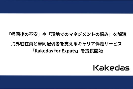 企業向けの教育研修事業と若年層向けの就職支援事業を展開する株式会社ジェイックの子会社である、国内最大級のキャリア面談プラットフォーム「Kakedas(カケダス)」を運営する株式会社Kakedasは、海外駐在員とその帯同配偶者を対象としたキャリア伴走サービス「Kakedas for Expats」の提供を開始しました。本サービスにより、海外駐在員のパフォーマンス向上やエンゲージメント強化、離職防止といった企業側の課題解決にも貢献します。