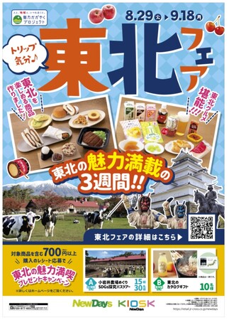 株式会社JR東日本クロスステーション リテールカンパニー(所在地:東京都渋谷区、カンパニー長:白石 敏男)は、運営する「NewDays」「NewDays KIOSK」において「東北フェア」を8月29日(火)から9月18日(月)までの期間、開催いたします。