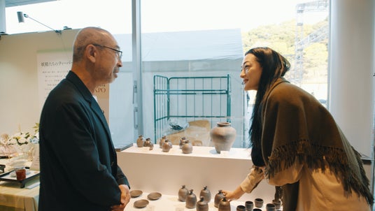 そして職手継祭と同じ日に金沢市で開催された「KOUGEI EXPO IN ISHIKAWA」では、冨永愛がしいのき迎賓館に設けられた輪島塗や珠洲焼のブースを取材。同会場で行われたトークイベントでは輪島塗伝統工芸士会会長の坂口彰緒さん、珠洲焼創炎会会長の篠原敬さんとともに登壇し、現状や今後の展望などを伺った。