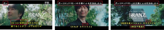 「BRANZ」は、このような社会課題解決への貢献と、SDGsの理念「誰も取り残さない社会づくり」に向き合い、より多くの方にCMを通じて「BRANZ」の想いを届けたいと考え、新たに「IAUD字幕CMアドバイザリーサービス」を導入しました。今回のCMでは、「国際ユニヴァーサルデザイン協議会(IAUD)」と、映像撮影後の仕上げ作業を行うポストプロダクション「イメージスタジオ109」から、聴覚障害当事者と共に、CMの意図や品質を考慮した上での字幕表現のアドバイスと制作の提供を受けました。