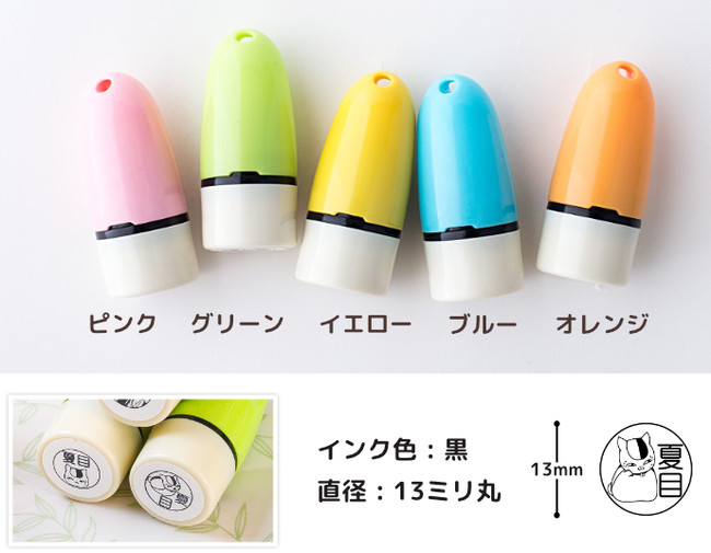 印面サイズはお名前がはっきりと見やすい直径13ミリ。ボディカラーは5色から選べます(インクは黒になります)。
