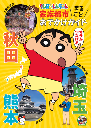 コミック・アニメ・映画と幅広く展開する人気作品『クレヨンしんちゃん』の舞台である埼玉県と、父・ひろしの出身地である秋田県、母・みさえのふるさと熊本県とは、2022年7月に世界初となる「家族都市」協定を締結。しんちゃんと3県は互いにタッグを組み、相互交流や観光振興に取り組んでいます。この度、「家族都市」プロジェクトの一環として、しんちゃんが「家族都市」3県のみどころや名物をご紹介する観光ガイドブック『クレヨンしんちゃん家族都市 まるごとおでかけガイド』を発行! 2023年11月より、各地で配布スタートいたします。
