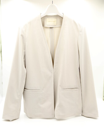 このたび新たに展開を開始した「遮熱※セットアップ」は、まるで日傘を着ているかのような安心感をテーマとしたセットアップです。遮熱生地を採用し、日差し、熱を通しにくく涼しい着心地を実現した一着です。また、軽い着心地も魅力の一つで、ジャケットはカーディガン感覚で羽織ることができます。無地調できちんと感があり、ベーシックなネービーと夏らしい明るいグレーの2色の展開です。