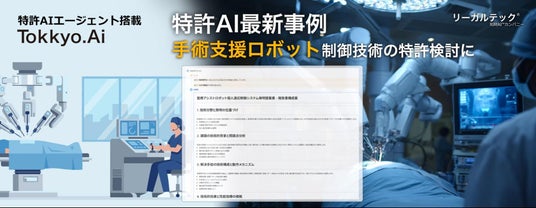 リーガルテック株式会社(本社:東京都港区、代表取締役社長:平井智之)は、医療分野における手術支援アシストロボットの個人適応制御技術に関する特許検討において、自社開発の特許支援AIプラットフォーム「MyTokkyo.Ai」が活用されたことを発表する。本事例では、術者ごとに異なる動作癖に起因して手術支援アームの制御精度が低下する課題に対し、操作者の関節角度や速度パターンをAIが学習・解析し、次動作を予測して補正制御を行う技術について、特許化可能な発明要素の抽出および発明提案書の整理を行った。
