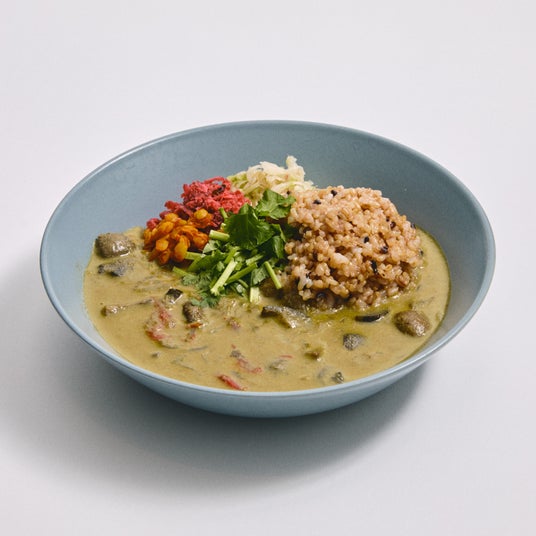 12月のukafeボウルはグリーンカレー。野菜たっぷりココナッツミルクの甘味と青唐辛子の爽やかな辛さが癖に。