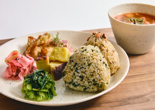 おにぎり2種(お選びいただけます)+おかず4種(日替わり)+野菜たっぷりスープのおにぎりプレート