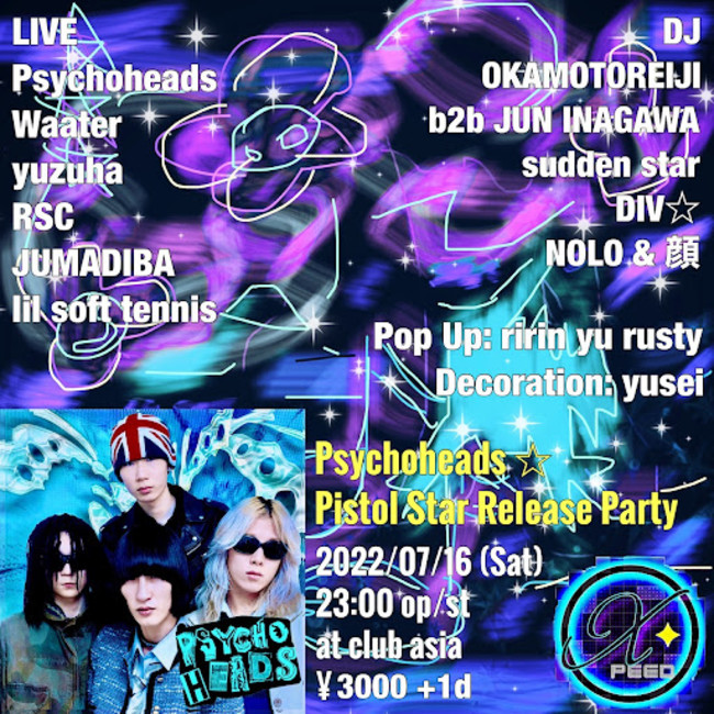 パーティーには<XPEED>のメンバーの他、DJとしてオカモトレイジやJUN INAGAWA、Lil Soft TennisやJUMADIBAといったHIPHOPのライブアクトなど、Psychoheadsを敬愛する面々が出演する。