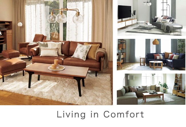 3月に発売した「Living in Comfort」は、五感が満たされるよう、素材の風合いにこだわり、組み合わせることでより心地よく感じられる新たなコレクション。それぞれ異なるライフスタイルで心地よさを叶える4つのプラン(※)をご提案しております。※下記参照