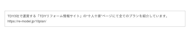 “十人十家”とは、様々な消費行動が“モノ”から“コト”へと変化する中で、「実現したいライフスタイルは人それぞれで、10 人いれば10 通りの暮らしの想いがある」との考え方から、世代・家族構成・趣味・ニーズなどに合わせて、TDYでテーマを設定した、暮らしの想いをかなえるライフスタイル提案です。これまでに、“十人十家”をメインテーマとする大規模展示会や様々なキャンペーンイベントを開催してきたほか、本年8月には“十人十家”に新たに5プランを追加し、好評をいただくなど、あこがれの暮らしを実現する15のリモデルプランの紹介をはじめ、幅広い提案を進めています。