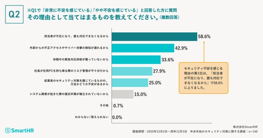 (2) セキュリティ不安を感じる理由、第1位「担当者が不在になり、誰も対応できなくなるから」58.6%