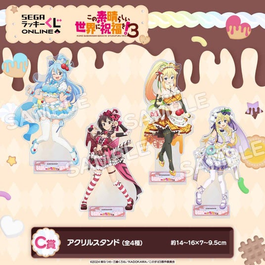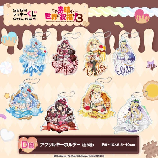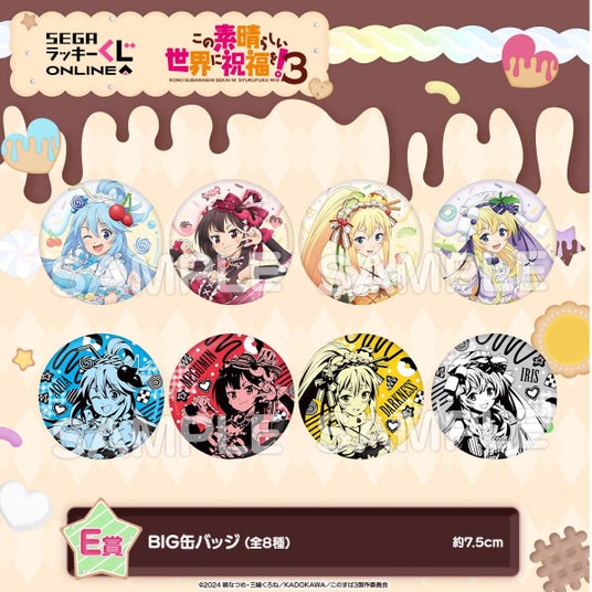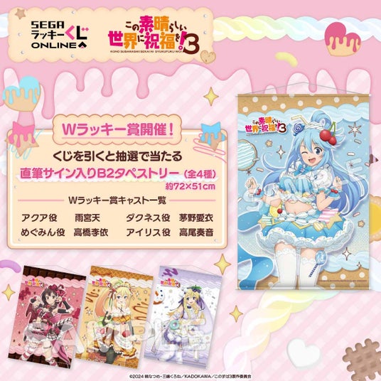 当くじは「スイーツ」がテーマの描きおろしイラストを使用したTVアニメ「この素晴らしい世界に祝福を!3」のセガ限定オンラインくじです。