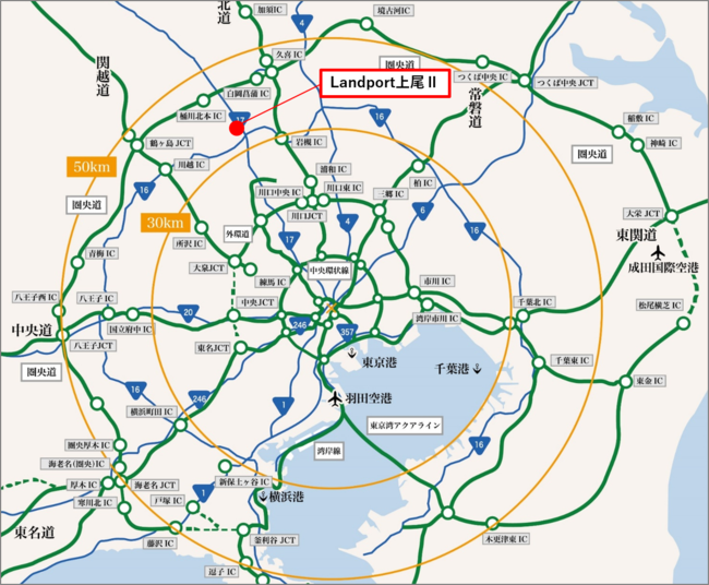 Landport上尾IIは、「Landport」シリーズ初となるフロア毎に異なるカテゴリーを想定した仕様とし、温度帯保管など幅広いニーズに応える設計を実現したことでEC系・医療機器系・出版・書籍系などさまざまな業種の企業の入居が決定いたしました。また、圏央道「桶川北本」ICまでの上尾道路の開通や今後の首都高速道路の延伸計画など、輸配送の利便性が向上している上尾エリアにおける物流の要として既に満床稼働しておりますLandport上尾Iと本物件を通じ、地域の発展に貢献してまいります。