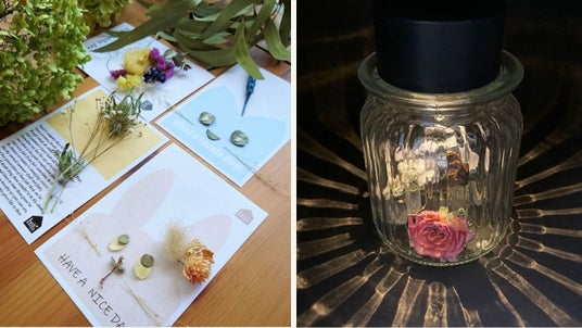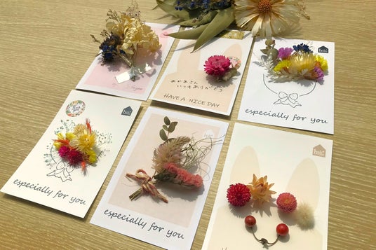 新所沢駅から徒歩約1分のフラワーショップ「hale-hana plants+(ハレハナ プランツプラス)」による、ロスフラワーなどを再利用したフラワーカード作りなどが楽しめます