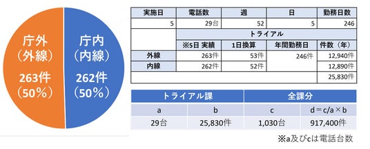 税務担当課:5日間のトライアルから算出した年間の電話件数と費用(推計値)