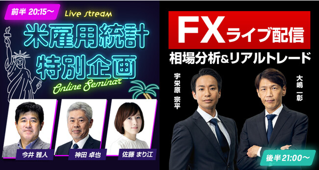 外為どっとコムでは、為替業界のみならず全てのマーケット関係者が注目する経済指標「米国雇用統計」を解説する無料オンラインセミナー、またリアルトレードを配信いたします。