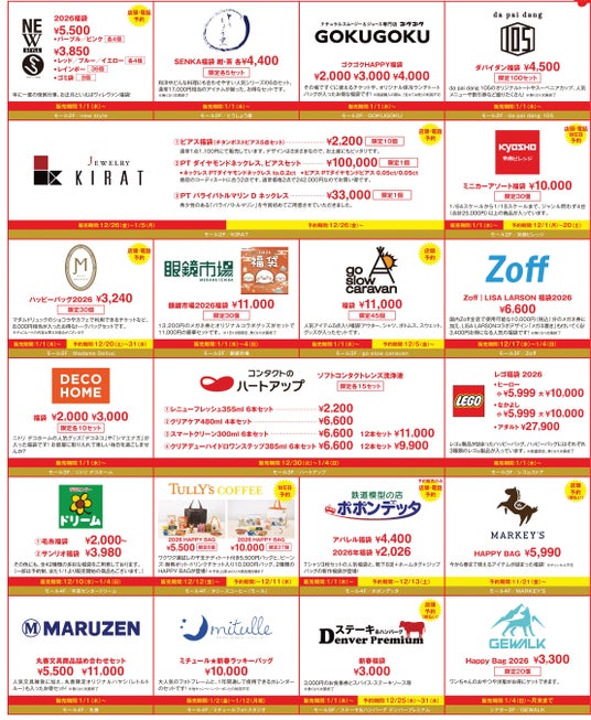 館内各店舗にて、人気アイテムや限定商品を詰め込んだ福袋を数量限定で販売いたします。