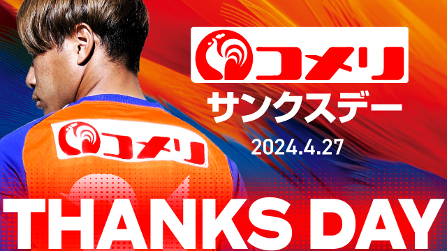 今シーズンも、てっぺんを目指すチームをサポーターの皆様とともに“最善を尽くして”応援したいと考え「コメリサンクスデー」を4月27日(土)に開催することとなりました。