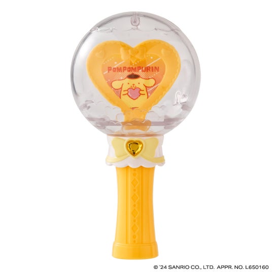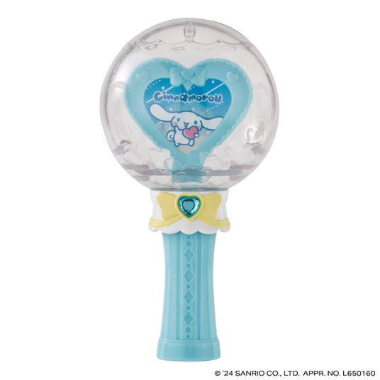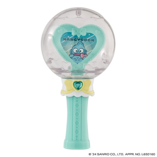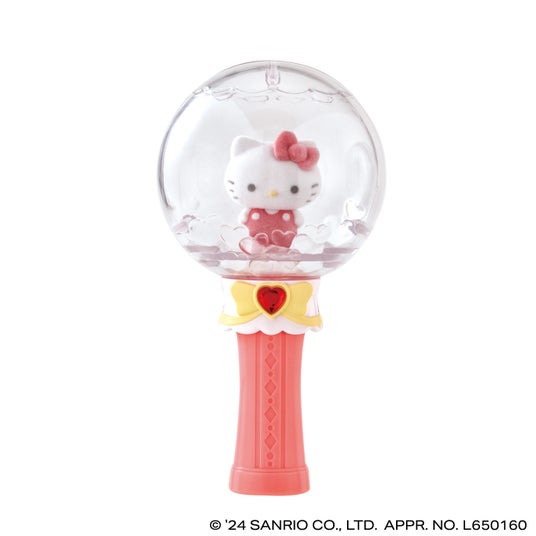 本商品は、ペンライト風デザインの全高約130mmのステッキです。カプセルレスになっており、パーツを組み立てるとステッキ型になります。本体とハート形のラインストーンの色はそれぞれのキャラクターをイメージしたカラーのデザインです。手持ち部分を取り外して飾ることもできます。別売り商品の「サンリオキャラクターズ ふわふわフロッキードール」や、好きなフィギュアを中に入れて飾ってもかわいい仕様です。