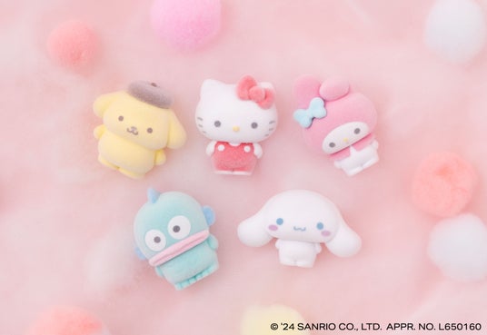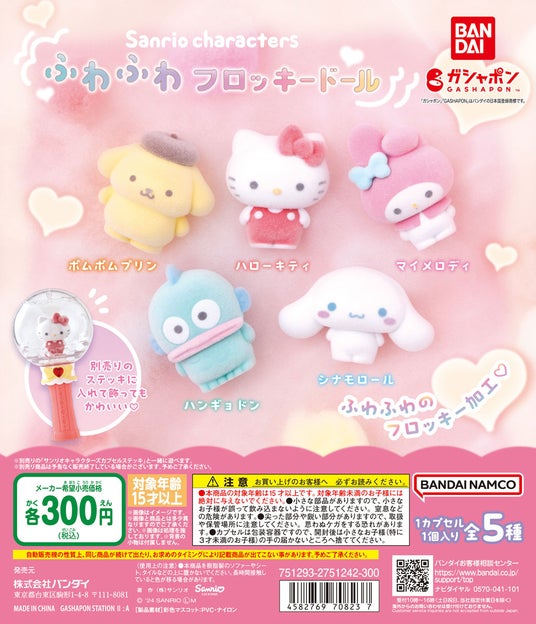 『サンリオキャラクターズ ふわふわフロッキードール』(1回300円・税10%込、全5種)を2024年12月第4週より順次発売