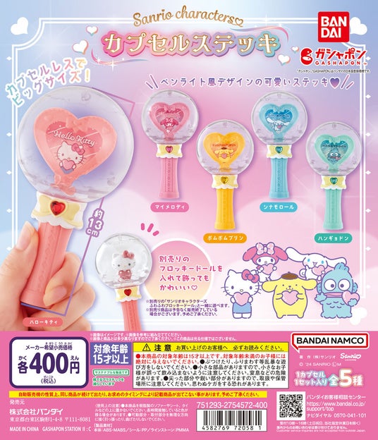 『サンリオキャラクターズ カプセルステッキ』(1回400円・税10%込、全5種)を2024年12月第4週より順次発売