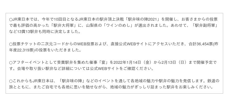 その他の受賞駅弁を含め、「駅弁味の陣2021」の受賞駅弁は別紙をご参照ください。