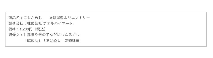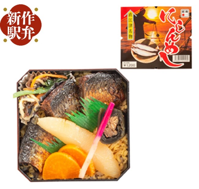 かつて直江津地域で盛んに食べられていたにしんの味を再現すべく、この「にしんめし」の開発に至りました。当時の味を再現することに大変苦労しましたが、懐かしくもあり、お酒が進む、港町直江津らしい新作駅弁が完成しました。