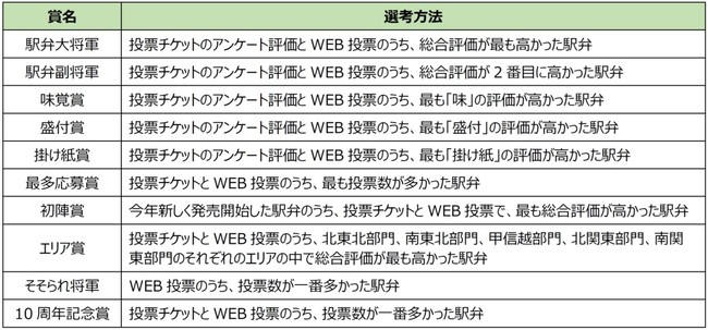 投票チケットからのアンケート評価とWEB投票のうち、総合評価※が最も高かった駅弁